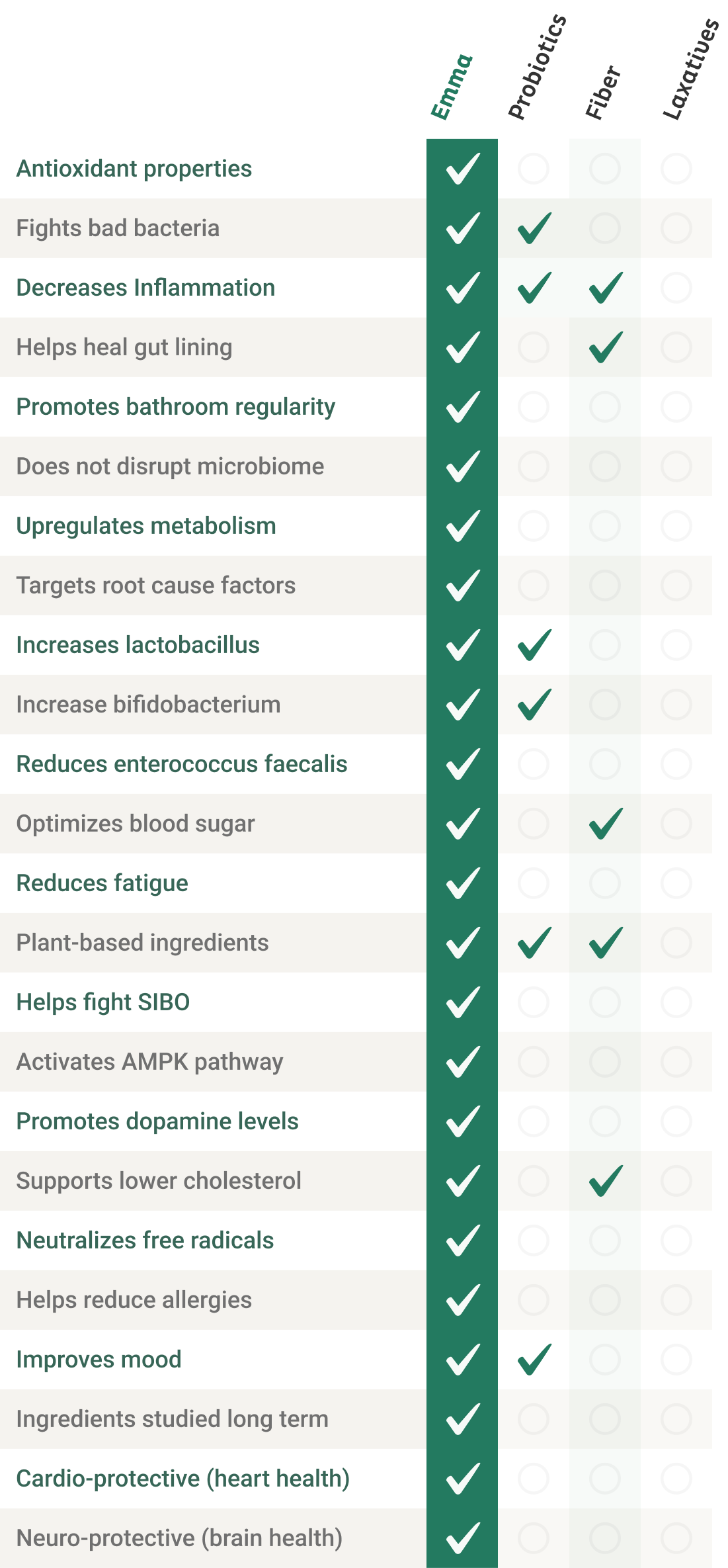 Hey Dr. Sam, I've tried everything from laxatives, to cleanses, and to probiotics. And probiotics are quite popular these days so what makes Emma different from probiotics?