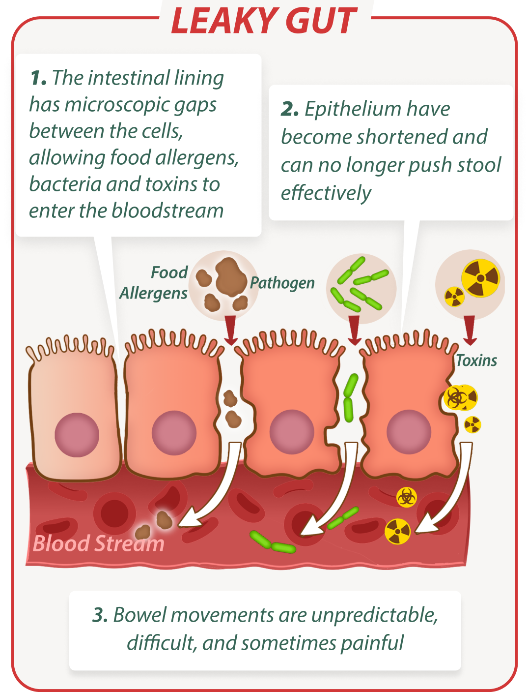 Food allergies are a sign that undigested waste product is leaking into the bloodstream, getting pushed out into the tissues, where it's being seen as a foreign invader.